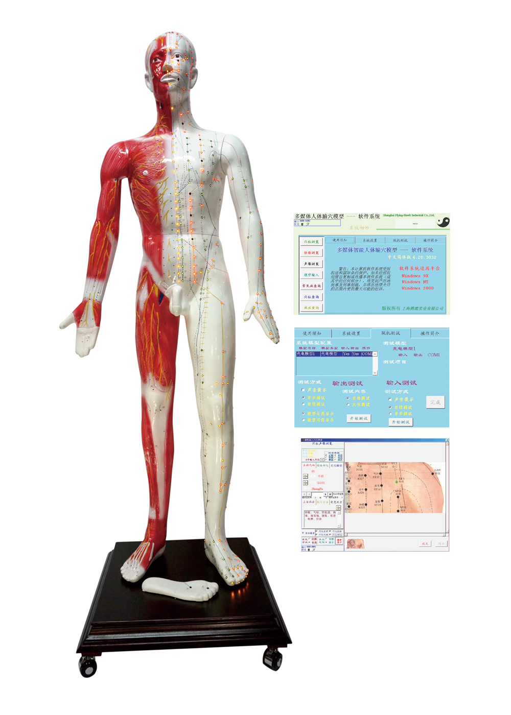 多媒體人體針灸穴位發(fā)光模型... 該系統融計算機技術、電子控制技術、多媒體技術、腧穴理論于一體;聲音、屏幕、人體模型同步控制筋絡腧穴的信息;顯示十二經脈循環(huán)流注,經脈絡屬表理對經關系,特定穴的分布;加之屏幕表層、淺層、深層穴位解剖圖的配合,常見病的辯施治,隨證選穴的查詢及處理輸出,使學員對人體經絡腧穴信息有更全方位的了解,更有利于加深印象與理解掌握;同時,亦可用于臨床與科研參考。